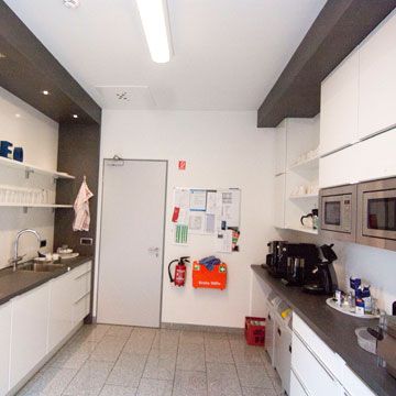 In der Küche können die Mitarbeiter ihr mitgebrachtes Essen erwärmen und Heiß- oder Kaltgetränke zubereiten.